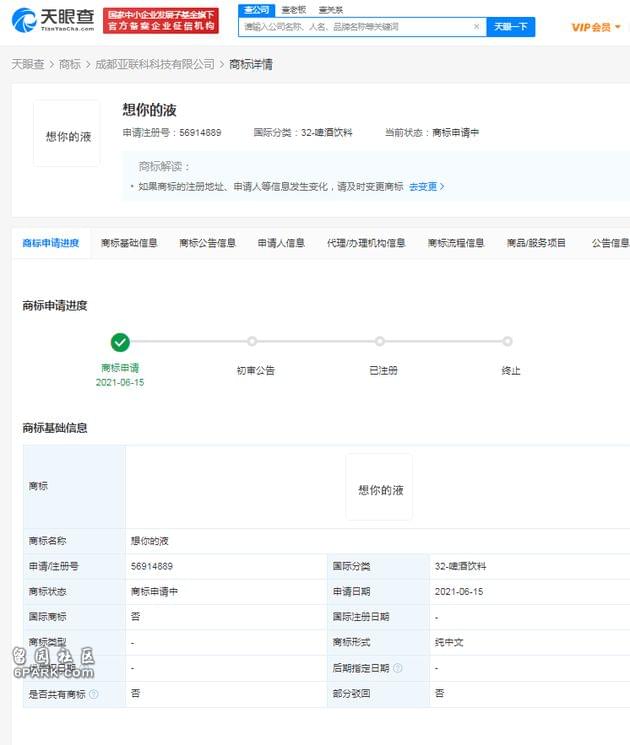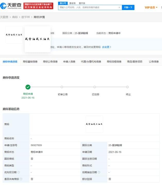 除此之外,“想你的液”“我命油我不油天”等相关语录也已于近日被申请注册商标。