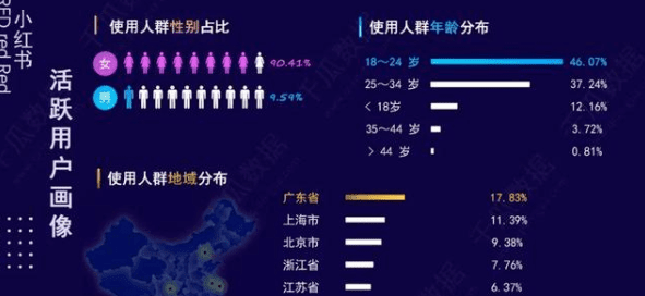 另一个数据是,某红书的用户当中18岁-34岁是最主要的使用对象,占总用户数的83.31%。