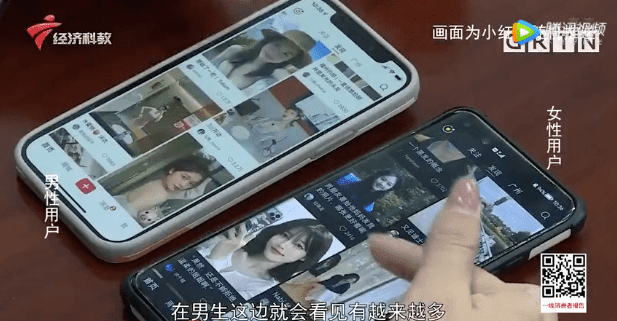 记者发现在某红书里头男女用户在同一个兴趣领域的推送内容完全不一样。