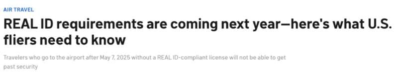 从2025年5月7日开始,除非旅客的驾照或身份证右上角有REAL ID的星形标记,否则他们将无法登上国内航班、进入某些联邦设施或进入核电站。