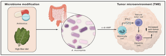 这种细菌已经在免疫学界名气不小,它已经被发现能提升免疫检查点抑制剂的效果,还能产生大量调节T细胞反应的肌苷。而如今Goldszmid博士发现,它们还能产生大量环二腺苷酸。即使是无菌小鼠,仅仅植入嗜黏蛋白阿克曼菌,它们也能有更强的抗癌反应。