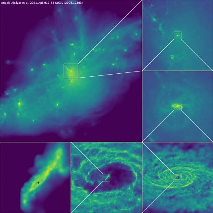 Anglés-Alcázar 也是 Flatiron 研究所计算天体物理学中心的副研究员,他说回答这些问题的一个挑战是创建足够强大的模型来说明在这个过程中发挥作用的众多力量和因素。以前的工作要么着眼于非常大的尺度,要么着眼于非常小的尺度,但要同时研究全部尺度的连接,这一直是一个挑战。