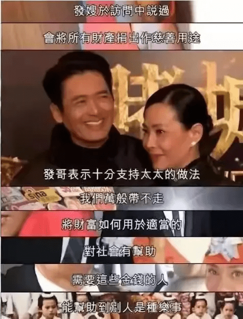 一次,鲁豫问周润发:“听说你要裸捐56亿,这事是真的吗?”周润发听完脸上露出不可思议的表情,然后说:“不可能,我也要生活,裸捐了难道喝西北风去呀。”鲁豫:“那你都想捐款了,以后还会拍戏赚钱吗?”周润发:“肯定要拍戏啊,我的工作就是拍戏,其实我也没有大家所说的那么有钱,大家不要想得我那么好,大家都知道我平时就像普通人一样生活。”周润发大家应该非常熟悉,首屈一指的华人演员,也是国际著名的演员。多次获得“影帝”称号,是中国影视圈的代表人物。周润发纵横影坛有40多年,塑造了一个个的经典角色,至今一直都有人在模仿,但从未被超越。1955年,周润发出生于香港一个普通家庭,18岁时偶然在报纸上看到了无线电视演员训练班在招人,他便与朋友一同前去。周润发长得高大帅气,有明星风范,被选中了,从此改变了他的一生。从训练班毕业后,正式进入娱乐圈。当时周润发由于没有好的资源,只好跑成套。在影视圈摸爬滚打6年之久,1980年,终于等来了机会。他与吕良伟、赵雅芝合作出演《上海滩》,他饰演许文强一角,一夜火遍了大江南北。周润发出演《上海滩》时才仅仅25岁,当年年轻气盛的他可谓是风华正茂,但“许文强”这个角色就像是为他量身定做,这么多年都让人难以忘怀!许文强为冯程程撑伞的一幕成了荧幕经典,这样的一对真是太匹配了,让人无比怀念当初那个清纯年代的时光。珍贵剧照终将成为经典,如此怀旧的照片有没有让你回忆起当年的美好记忆呢!如此恩爱的一对让人无比羡慕嫉妒啊,许文强的英俊帅气加上冯程程的清纯可爱,简直就是郎才女貌的一对情侣。不得不佩服那时候八九十年代的演员,没有华丽的特效与滤镜,但仍能拍出如此完美的巨作,真是让人不得不竖起大拇指。后来,周润发又凭借电影《英雄本色》的小马哥,更是大获成功,还荣获了第6届香港电影金像奖最佳男主角奖,此后,他的演艺事业如日升天。通过《赌神》饰演高进,并且又出演了一列类的赌神大剧,被誉为驰骋赌桌的赌神。周润发在事业上顺风顺水,同样在感情方面也很顺。1987年,周润发与陈荟莲步入婚姻的殿堂,如今,周润发已经红了四十年,他成功背后,一直有个默默支持他的妻子。其实周润发和妻子陈荟莲没有生下儿女。周润发在08年拍了一部电影《黄石的孩子》,这部电影的特殊之处,就是主角要带着六十个孤儿踏上征程。 展现的是主人公带着六十名孤儿从湖北黄石到甘肃山丹,疾行于生死边缘的逃亡之旅。周润发在这次电影拍摄过程中,与六十个孤儿日夜相处,感触特别深。后来,周润发就宣布会把自己所有的遗产裸捐出去,消息一出,震动整个娱乐圈。而发嫂也十分支持周润发的这个做法,所以,周润发裸捐事件在社会上的影响就不用说了,大家都很敬佩这位德艺双馨的发哥。后来电影上映后,票房也不错。
