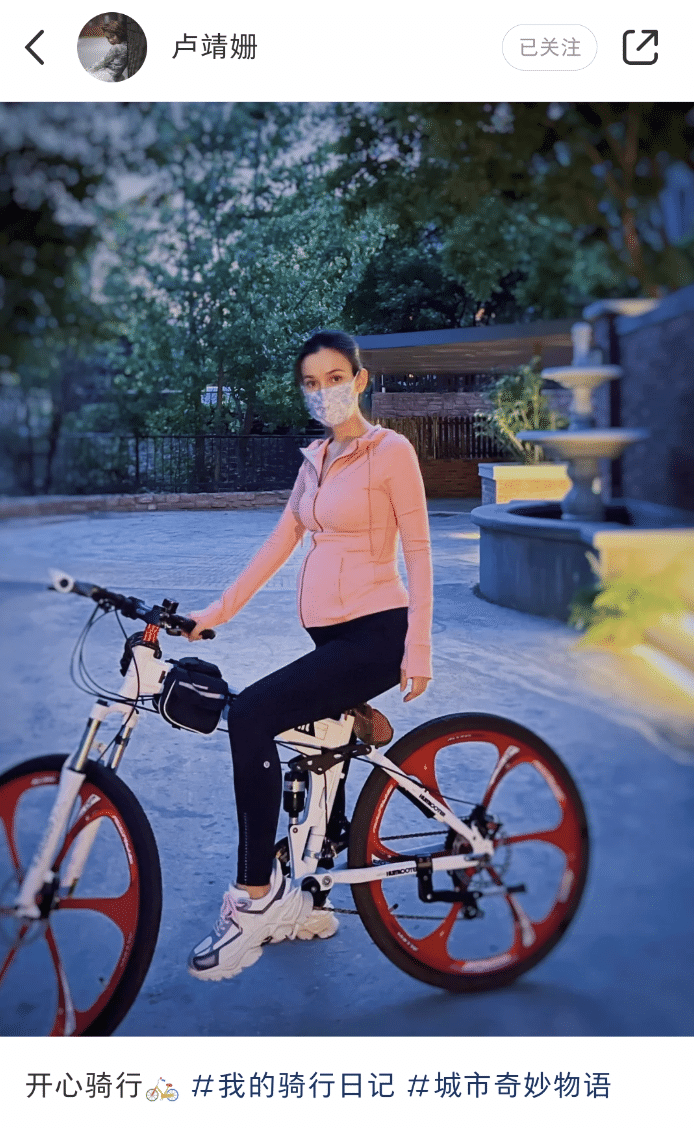 卢靖姗还坚持骑行,怀孕期间仍然停不下来,相信产后能很快恢复。