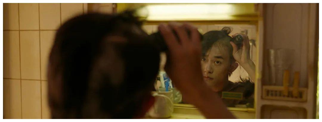 《送你一朵小红花》中易烊千玺对着镜子剃起了光头,全程素颜,脸上的痘印都看得一清二楚。