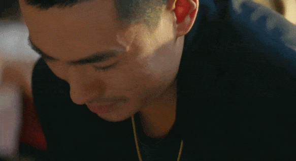 细节二:在抓菜霸那场戏,原本林浩只是在门口蹲守,没想到菜霸直接摔在了他的车上,面对着从天而降的“大礼”,他的表情有了3次细微的变化。第一次是菜霸刚掉在车上时,张艺兴的表情是警惕和疑惑的。