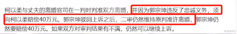 经过一年多的审理,2019年10月,法院认定俩人婚姻“出现重大事由而无复合希望”,同意柯以柔的申请。
