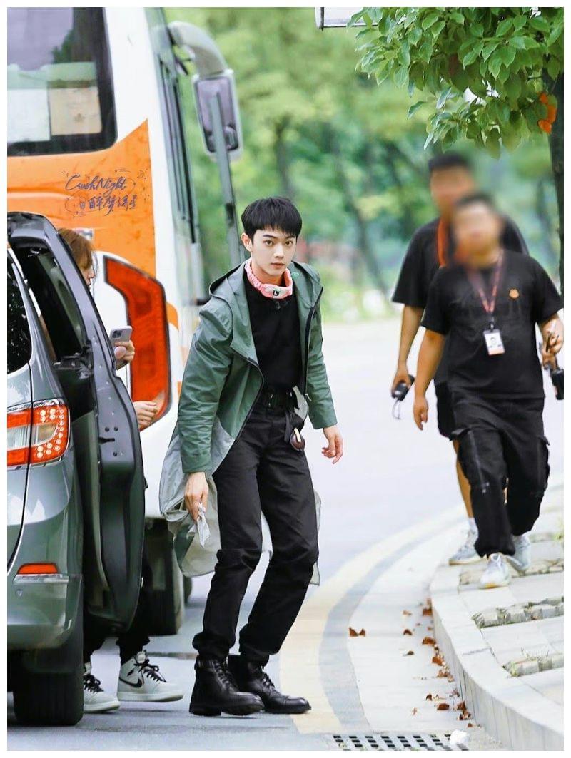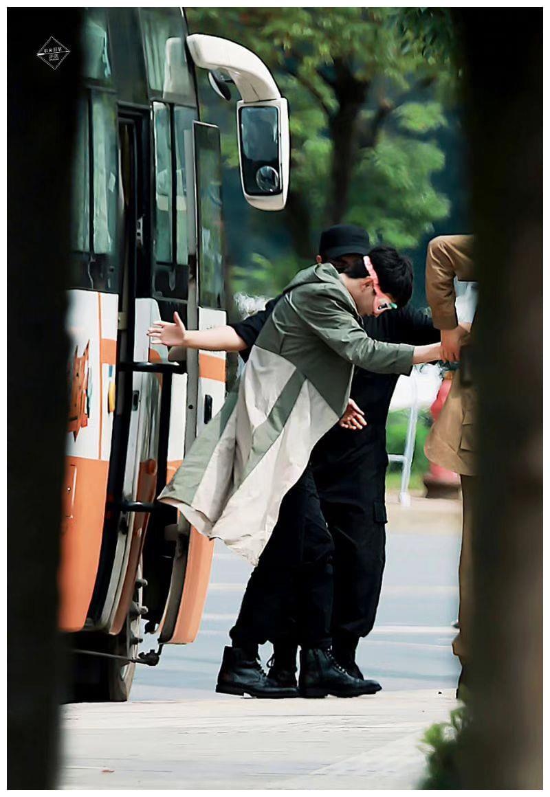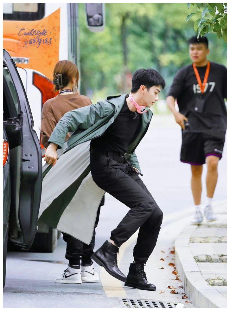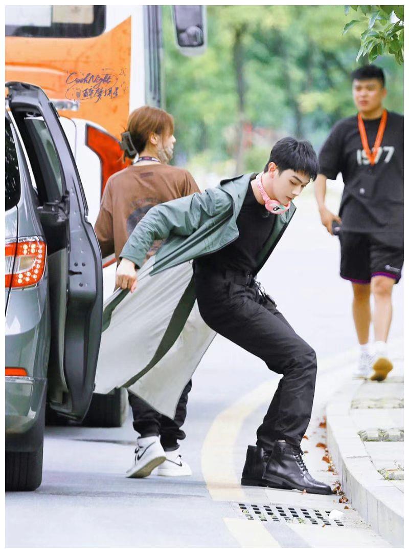 下车时十分有气场,结果下一秒…风衣就被车子勾住…