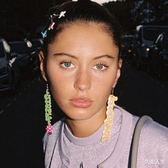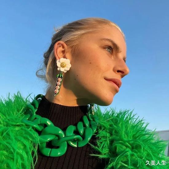 这种风格的耳环设计上十分简单,但佩戴起来效果却出奇的好,有一种“四两拨千斤”的感觉。