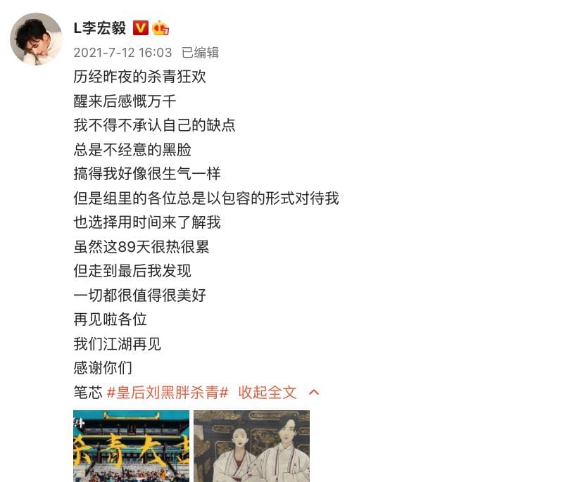 以至于李宏毅在剧组杀青的时候,还特意聊了下自己黑脸的问题,感谢剧组的包容。