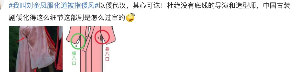 因为和服腋下、袖内侧开口是正常设计,叫身八口、振八口。所以这次剧中刘金凤有服装腋下开口,是网友攻击得最猛烈的地方。