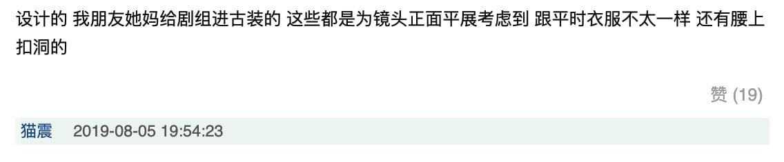 其实这个设计本身主要是考虑到的是保证宽袖的平整服帖和演员动作的方便自然,以及正面拍摄时服装平整好看。几年前有人提出过这个问题,就有了解内幕的网友解释过。