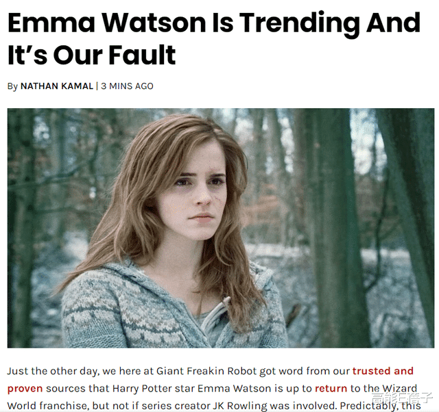 先说一下这则新闻,原始新闻的出处是一家叫“Giant Freakin Robot”的网站,除了这则新闻以外,没有别的消息来源写了任何关于“赫敏回归哈利波特”的消息。