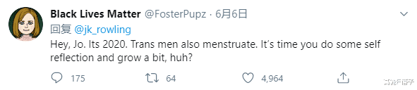 因为自从罗琳几次针对变性人的发言以后,许多外国“哈迷”决心跟罗琳“分家”,有很多粉丝刷起#变性的女巫也是女巫#的话题以表示对罗琳的反对。