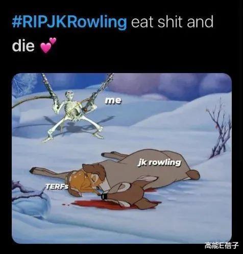 不少网友都留言希望JK罗琳去死,甚至还搞了个话题“RIPJKRowling”