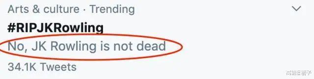因为这个话题的讨论度太大、恶评太多,推特官方还特意在这个话题下方注明了“JK罗琳没有真的去世”。