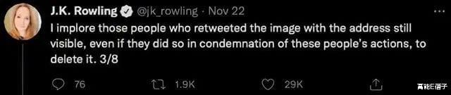 有些人只是在网上口嗨,可是真的有人在线下找到了JK罗琳的家,甚至给她发死亡威胁。
