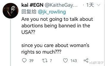 但这条评论底下早已与《哈利波特》无关了,点赞最高的一条评论是“你不打算聊聊美国禁止堕胎的事吗?鉴于你这么关心女权”。