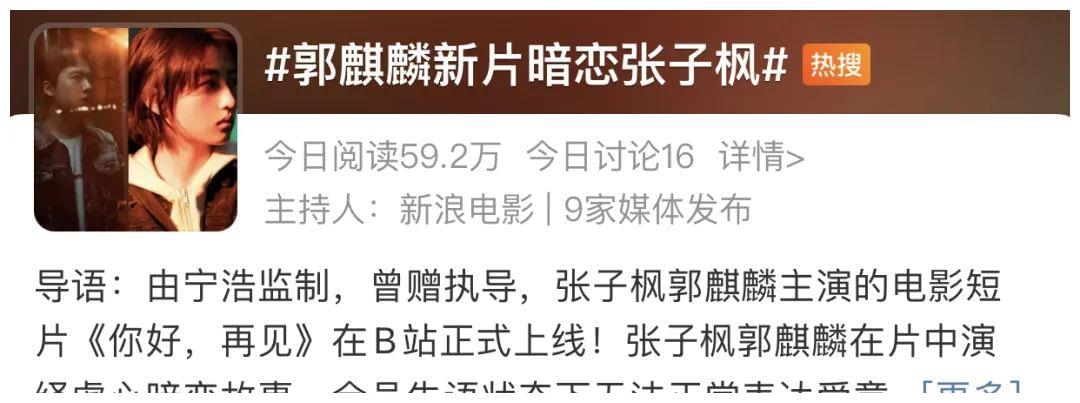 在《你好,再见》这部短剧中。CP粉:就是说有没有一种可能,作品能够照进现实呢?#他们的暗恋这么青涩稚嫩?谁能想到,相声演员出身的郭麒麟,竟然可以和国民妹妹张子枫这么相配。▼