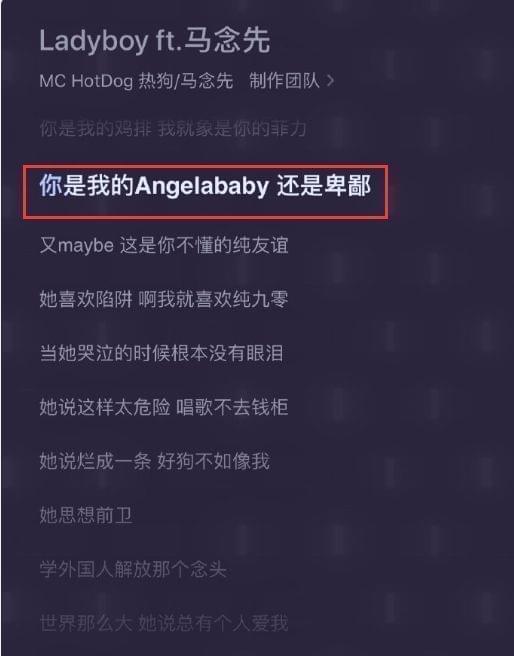 从热歌的歌词中就能看到,他提到了杨颖的英文名angelababy,而后面的这句卑鄙很显然是不尊重女性。