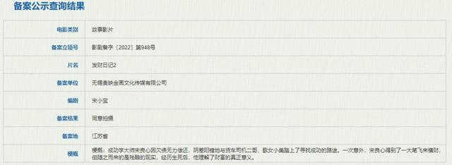 1905电影网讯日前,据国家电影局关于2022年4月全国电影剧本(梗概)备案、立项公示的通知,由宋小宝编剧的电影《发财日记2》正式立项。
