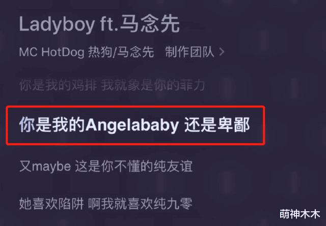 据悉,热狗推出的这首新歌叫《Ladyboy》,除了这一句谐音歌词“你是我的Angelababy,还是卑鄙”之外,还有一句“你没整形前,我就认识你”,直接内涵了baby整形的事,随后又来了一句“小心我把你当做凳子骑”。