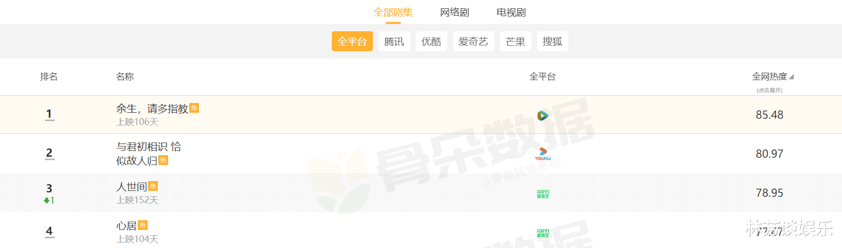 《余生》在3月的总榜上,以第一名的成绩。