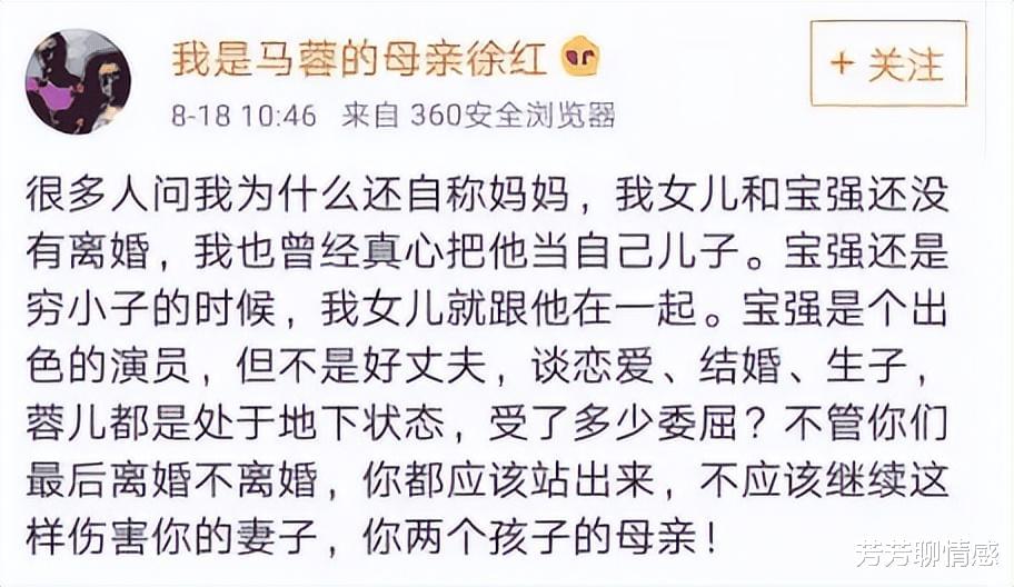 宝强的妈妈直到两人离婚的事后对着镜头哭了,