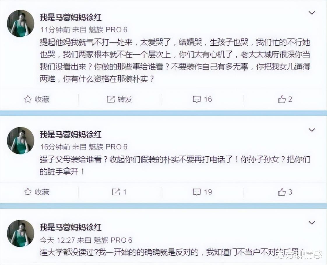 马蓉的妈妈又怒骂:“提起他妈我就气不打一处来,就知道哭,结婚哭,生孩子也哭,我们忙得不行她也哭,我们两家根本就不在一个层次上。”