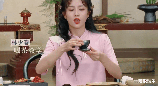 粉队美女组baby与白鹿悄然坐下之后,后者向镜头演示了该如何品茶。