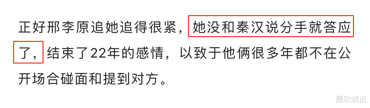 跟秦汉20年的长跑,已让她不再年轻,虽然身边一直不乏追求者,但在数量和质量上,已呈现断崖式下跌。