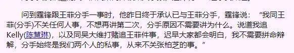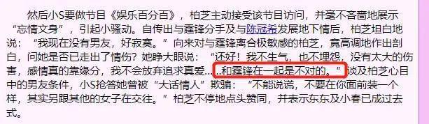 但2003年,在《娱乐百分百》中,她又说:“和霆锋在一起是不对的。”