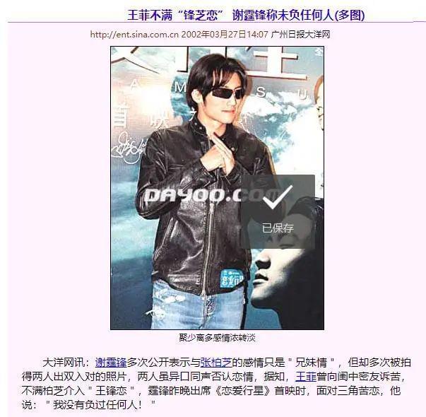 就在向太力挺张柏芝的时候,张柏芝又冒出一件事情轰动全港:张柏芝情史中最引人注目的无疑是与谢霆锋、王菲爱恨情仇的三角恋。