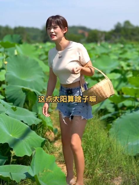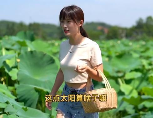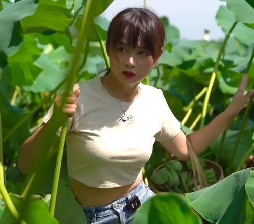 池中的水是很脏的,长满了绿色的浮萍,但严素并不介意,直接淌水下池,穿着露脐装在池中摘起了莲蓬。