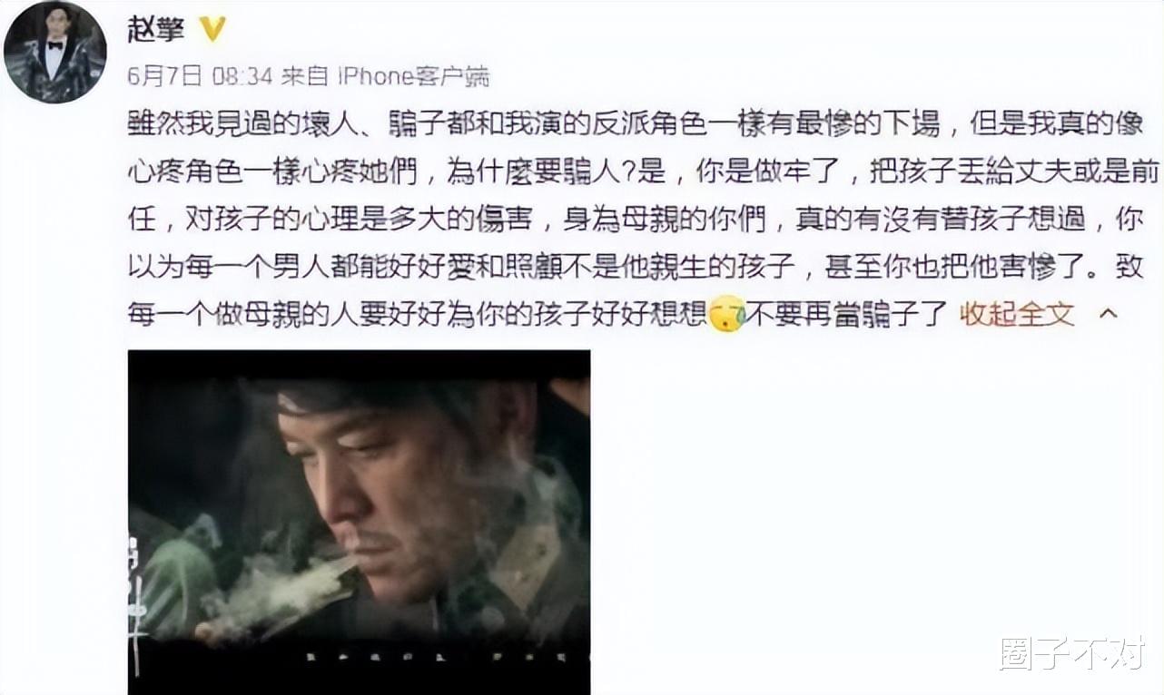 2021年6月赵擎在个人社交平台上发布了一条推文,大意是对自己曾经那段过往的指责和对林欣缇现状的阐述。