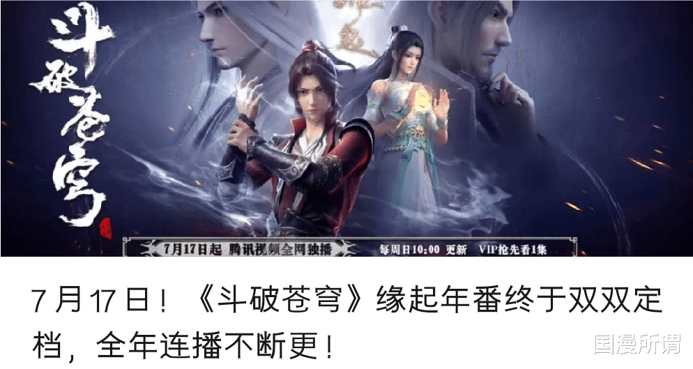 斗破苍穹缘起及年番时间已经确定,就在7月17号,为啥这么说,因为官方已经发布公告了,同时也是承接《武动乾坤第三季》的完结。