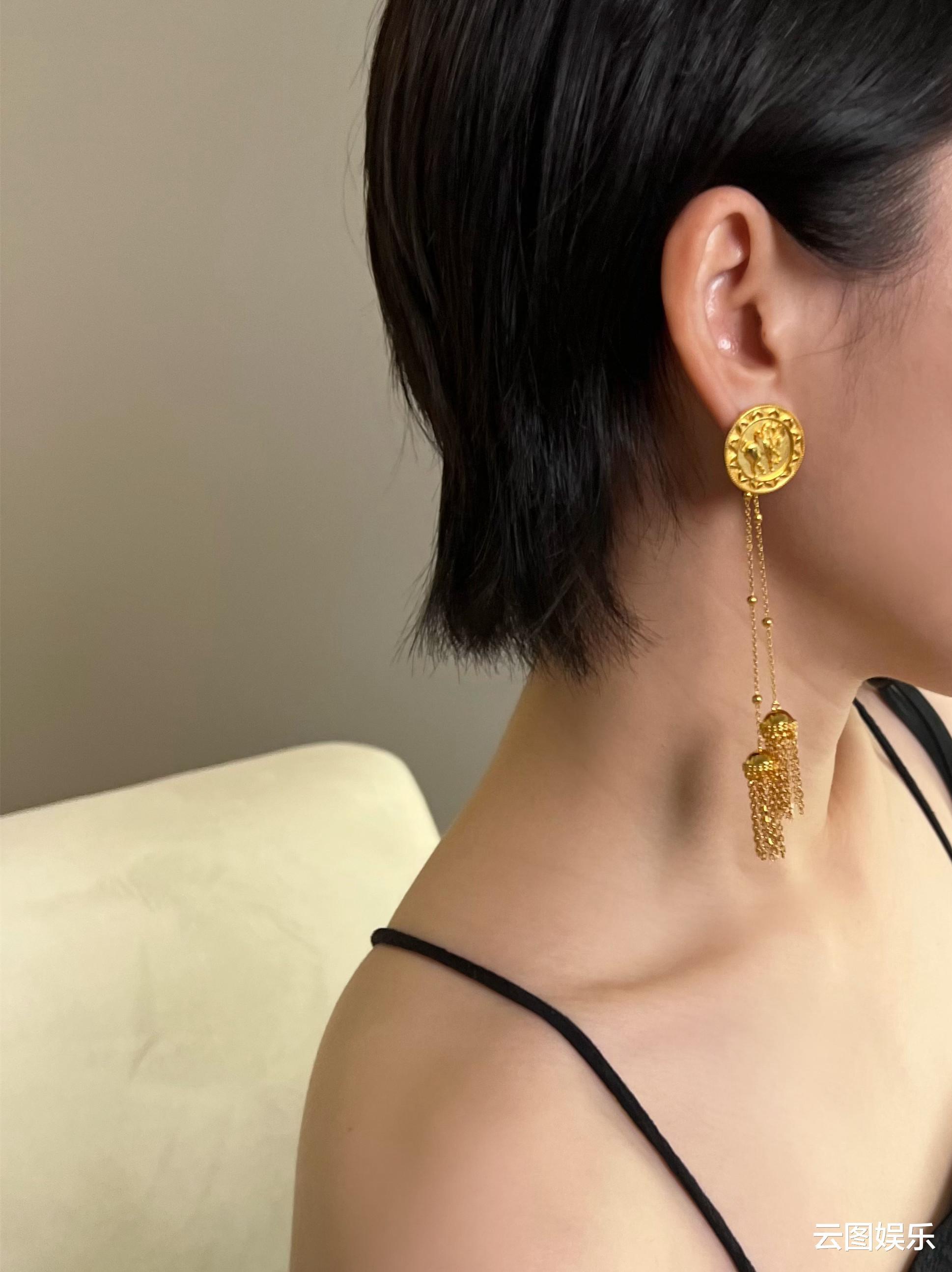 林宁瑞戴了一副价值千元的金耳环出镜,她显然很喜欢,特意拍摄了耳环的细节。