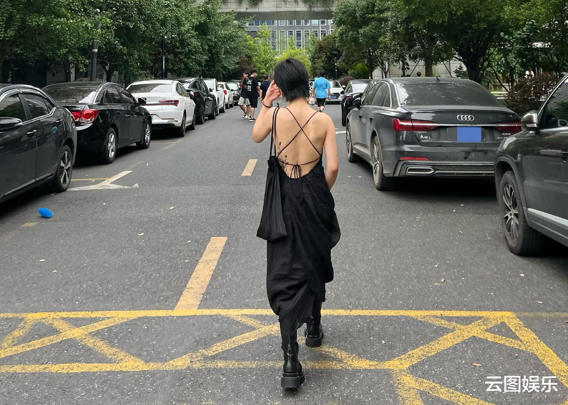 曝光的照片中,林宁瑞现身街头,大秀完美好身材。剪了一头超短发的她,穿了一袭黑色露背吊带裙,配上黑色靴子,打扮非常时髦。