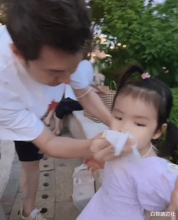 绿泡泡非常疼爱女儿,和桔子一起坐跷跷板,或是帮她擦嘴,一个著名的主持人化身为超级奶爸。桔子的长相更像红果果,眉眼间带着几分英气,想必长大了也是一个美女。