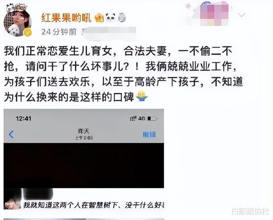 不过,也有部分网友玩梗没有界限,调侃就知道当年他俩在“智慧树”下没干好事,这话惹得当事人不满,红果果发截图硬刚,直言他们夫妻俩正常生儿育女,没偷没抢,兢兢业业工作为孩子们送去欢乐,不知道为什么会换来这样一句话。