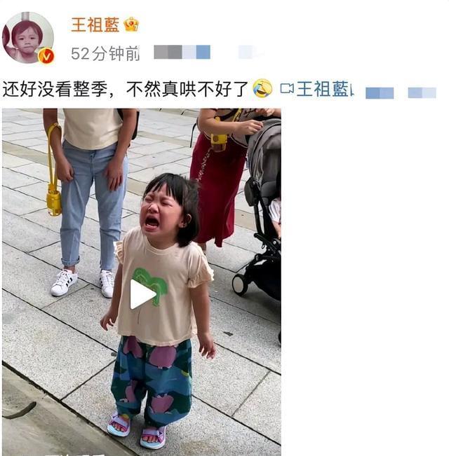 6月29日,王祖蓝晒出一段女儿gabby当街嚎啕大哭的视频,配文说“还好没有看一整季,不然真哄不好了。”