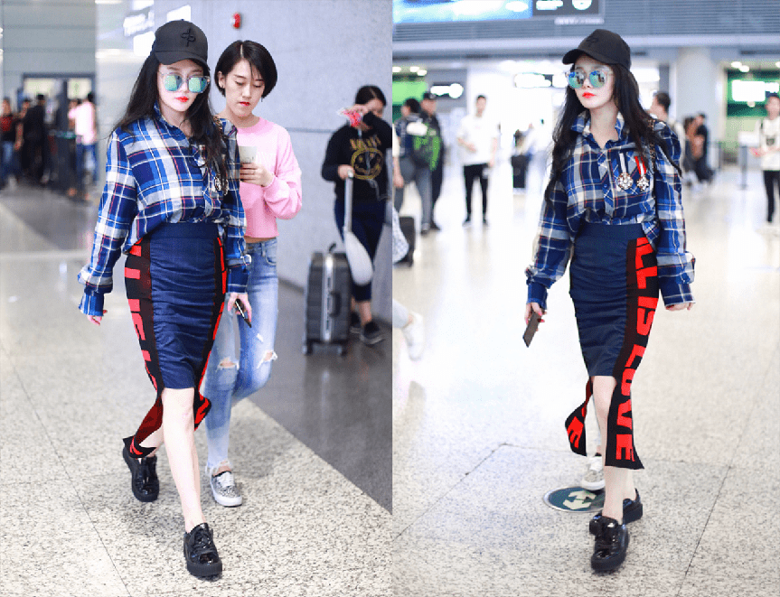蓝色的格纹衬衫,是比较适合大多数人穿着的,结合白色与红色格纹与线条,撞色明显不老气,搭配一条蓝色撞色印花紧身包臀裙,女人味十足还很个性。