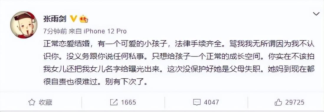 一直没有公开承认二人关系也是为了给孩子一个安静的成长空间。(当然张雨剑立单身人设真的让人无法理解)。