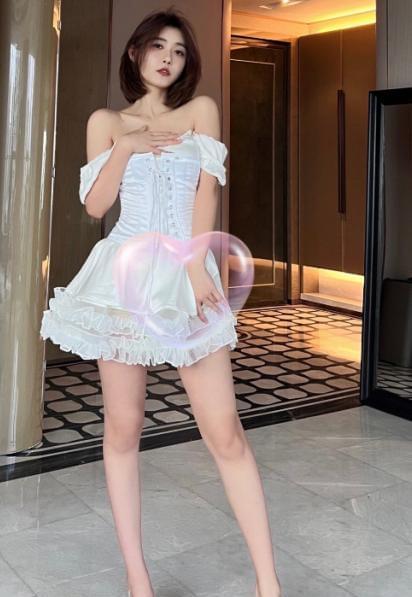 此外,聂小雨穿的裙子下摆是透明蕾丝材料,穿在她的身上隐约可以看见大腿上方,所以聂小雨在拍照片时,自己不忘打码处理,将这个位置用浅红色的爱心遮挡一下。在另一张全身照中,聂小雨直接将此处的蕾丝P厚,这样就相当于打码但又不引人注意。