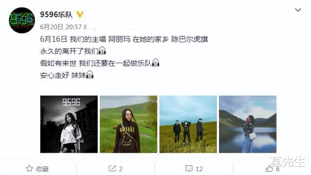 让人万万没有想到的是6月20日9596乐队官方账号发文称阿丽玛在家乡陈巴尔虎旗遭遇车祸,不幸离世,年仅31岁。