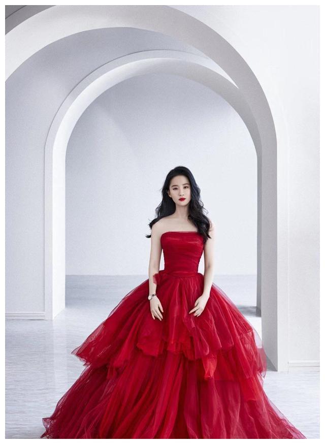 刘亦菲并不是瘦得皮包骨头,而是一种别样的美,她穿着一身长裙,虽然没有那种纤细性感的感觉,但却多了一种妩媚。她穿着一件大红色的抹胸长裙,上身包裹着盈盈一握的腰肢,下半身是一条宽大的荷叶长裙,将她衬托的更加美丽,更加的优雅。
