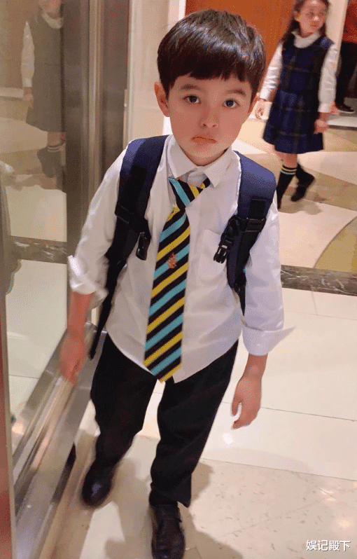而两人的儿子就更帅了,一双大大的眼睛,端正的五官搭配帅气的轮廓,俨然就是一名小帅哥,不论是在发型上还是着装上,小男孩的打扮都既洋气又有范。