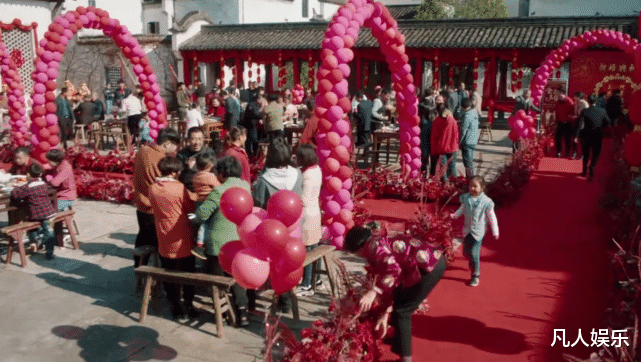这一部分导演和编剧非常用心,无论是婚礼现场的布置,还是席面、摆设,又或者是婚礼的流程,完全就是按照现实中农村的婚礼设定。