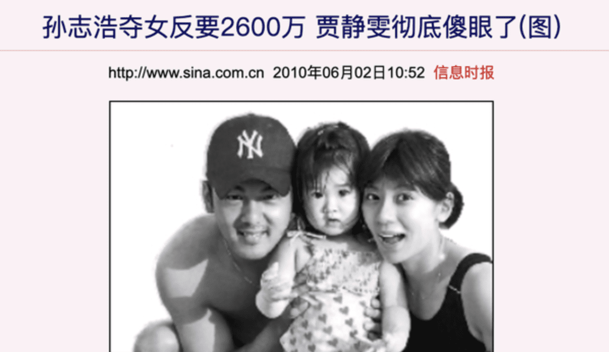 孙志浩也不是吃软饭的,他非但不把抚养权给贾静雯,还算了一笔账,要求贾静雯支付他2600万新台币作为夫妻财产分割。