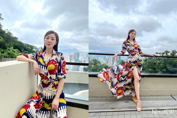 这次雨后天晴,熊黛林也是跑到了自己的豪宅天台来吹风乘凉,只见姐姐身着一件亮色的个性化图案长裙,不规则的图案加上超高色彩元素,很亮眼。